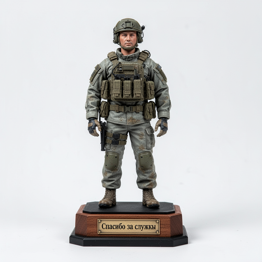 Если хочется подчеркнуть личную историю, обратите внимание на фигурки с гравировкой на подставке. Короткое «Спасибо за службу» или дата, связанная с важным этапом, выглядит достойно. Для коллекционеров уместны тематические наборы: фигурка плюс памятная табличка или жетон в мини-витрине. Такой комплект легко разместить в кабинете, а при необходимости — взять с собой при переездах.